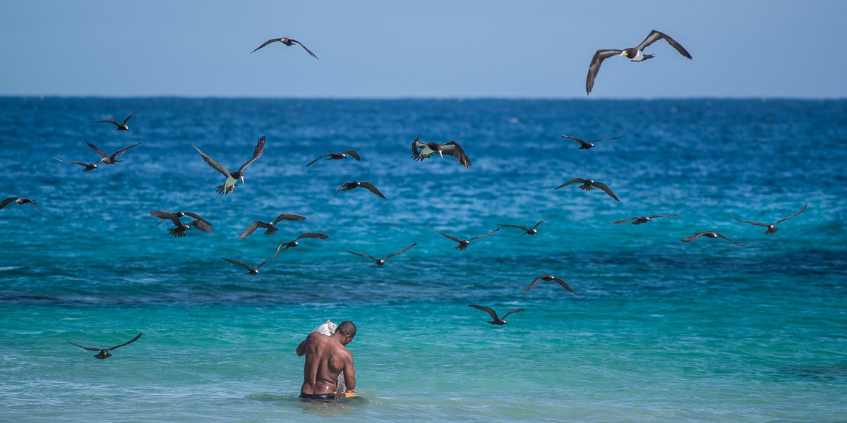 O mar nas ilhas do arquipélago de Fernando de Noronha é cristalino, feito de um mistura de tons esverdeados e azuis. A temperatura das águas é agradável durante todo o ano, tornando-as perfeitas para mergulho de snorkel ou cilindro. Neste cenário paradisíaco, onde estão as pousadas Zé Maria e Teju-Açu, golfinhos, cardumes de peixes nas praias, tartarugas e aves marinhas não são difíceis de se ver.