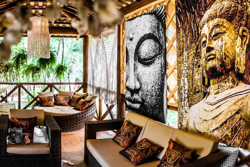 garimpadas nas fazendas e engenhos da região. O pórtico, que remete às igrejas de Olinda e de Ouro Preto, foi esculpido a partir da madeira bruta. Os ambientes ganham toques extras de charme, com obras de arte e artesanatos finos de importantes artistas do Nordeste.