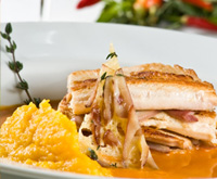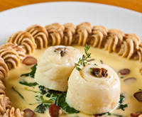 Filé de Linguado ao vapor de vinho branco com bordadura de Batata e Pinhão Duchesse