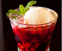 (Frutas Vermelhas mornas com Tomilho e Sorvete Artesanal de Iogurte)