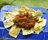 Ravioli de abóbora com ragú de lingüiça