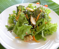 • Folhagem, pitanga e algumas frutas da horta hidropônica da Pousada.