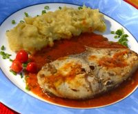 Apaga Fogo – posta de dourado grelhado ao molho de páprica doce com purê rústico de aipim