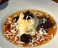 O que a baiana tem? – sorvete de coco artesanal com calda de ameixa caseira e coco ralado